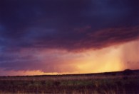 As the wall cloud got closer the, forward flank downdraft kicked into high gear and pushed a heavy rain shaft well ahead of the main part of the storm. So, we had to leave quite a few minutes before the wall cloud got really close. This may have been a good thing considering it was getting dark. But hey, when we finally decided to leave the storm it wasn't quite dark yet! |