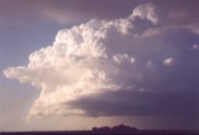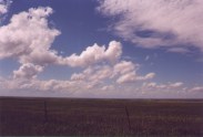 By about 5:30, anything that had tried to go up had failed. We saw that most of the towers that were trying were off a little to the north. We headed that way, then east some on some small, bumpy gravel road. Then finally, at about 6pm, a cumulus cloud right over us suddenly took off! Six o'clock magic baby! What's so amazing about this supercell is how small it was, and how small it's top was. It really wasn't a tall storm, that's for sure, and it sure as hell didn't look very impressive at first. Take a look! |