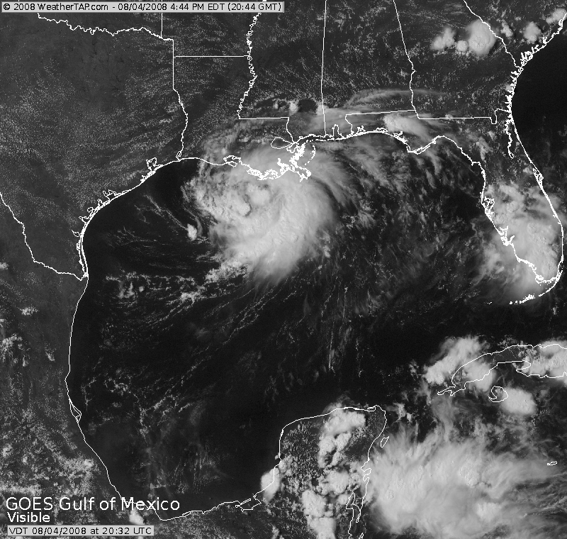 Tropical Storm Edouard made landfall between High Island and Sabine, TX on the morning of 5 August 2008. The National Hurricane Center estimated the top sustained wind speed at landfall to be ~65mph and a central pressure of 997mb. I left Norman, OK late and was not able to be on the coast at the time of landfall, but intercepted the center of circulation within an hour of landfall between High Island and Winnie, TX on SR 124 and measured a low pressure of 997mb. I can only guess the wind speeds; possibly 40-45 sustained with gusts to 50 or 60mph in the southern main convective band north of High Island, TX. I only witnessed light areas of wind damage. I brought my body board and drove south of High Island, TX to the beach to ride some waves, but the waves were too small to ride. I shot some video and met Mark McGowen at an old truck stop east of Wallisville, TX on I-10. We talked for a while and took off; about 1,000 miles round trip by the time I arrived in Norman. |